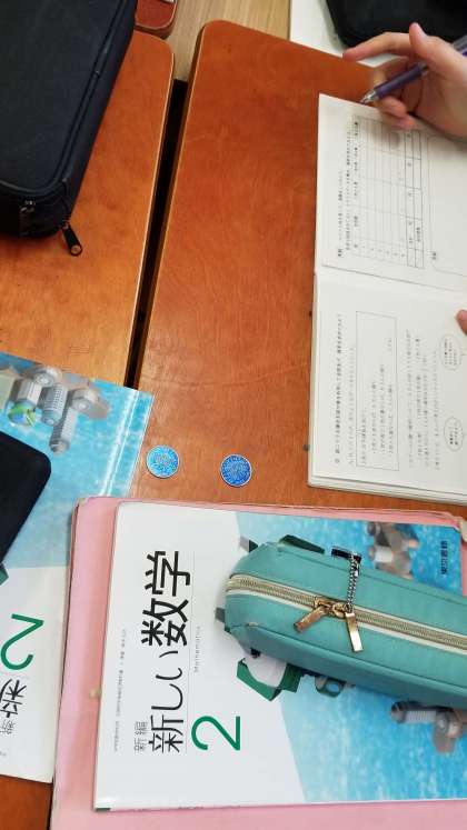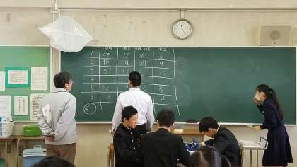 コイン2枚を投げて、表ー表、裏ー表、裏ー裏のどれになるか。班ごとに一定の時間、実際に投げてみます。