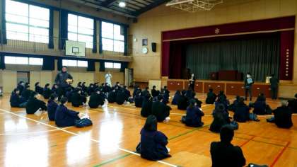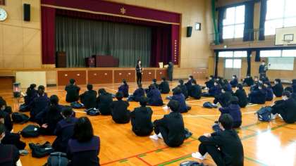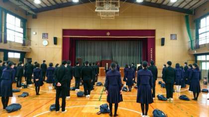 今日は公立高校一般選抜入試の願書出願日。受験にのぞむ3年生の皆さんが体育館に集まってきました。5日ぶりに会う級友の姿に、気持ちも和みますね。