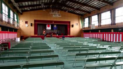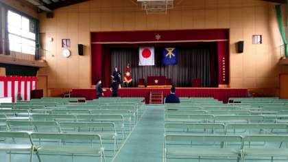 式場内の準備がほぼ仕上がりました(あとは舞台上の盛り花を残すのみ)。セッティングが完了したので、卒業生代表生徒に来てもらい「答辞」の練習を行いました。68期生のメッセージが感じられる、立派な「答辞」です。本番もよろしくお願いします。
