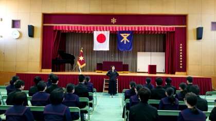 卒業式を明日に控え、3年生の皆さんが登校しています。ウィルスの感染拡大防止のため、2クラスずつの分散登校。まずは1組&2組の皆さんが体育館に集まっています。卒業式の流れを再確認した後、卒業文集・PTA新聞などを配る予定です。