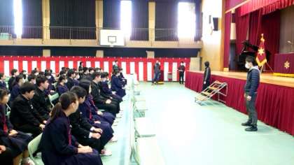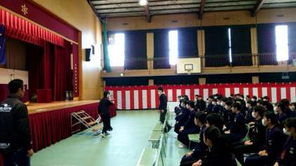 限られた時間ですが、卒業式の流れを確認しています。式場への入場や自席から舞台にすすむ動きなどをやってみました。練習する機会が無い中、1,2組の皆さんが頑張って練習しています。頑張ってね!