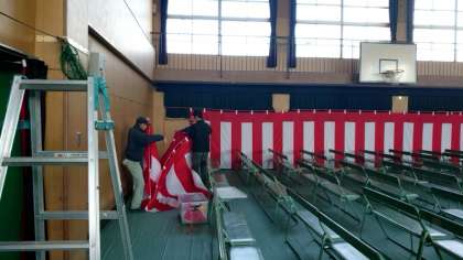 来週水曜日(3月25日)より「部活動を行うことができる」との通知が届きました。通知を受けて、先生方が体育館のお片付けに取り組んでいます。紅白幕やテーブルの白布など、式典で使用したものを整理します。部活動の詳細(スケジュール等)については、改めてお知らせしますので、ご確認ください。