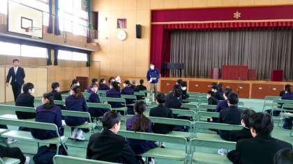 今年度は学年別の修了式となりました。担当の先生方から休み中の過ごし方や健康面などお話が続きます。1年間を締めくくるとともに、次の学年にむけての準備もすすめていきましょう。