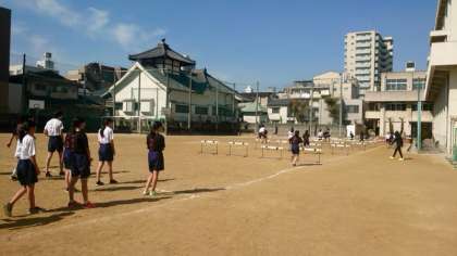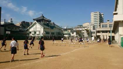 陸上部の皆さんがハードル走の練習に励んでいます。歩数が合わないと上手く跳べないですね。歩幅やリズムをイメージしながら、繰り返し練習します。ケガしないよう、気をつけてください!