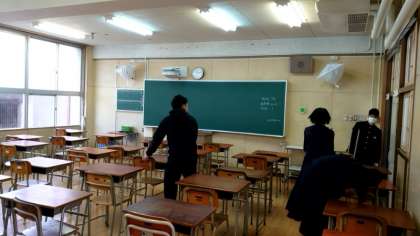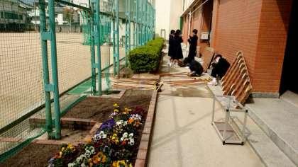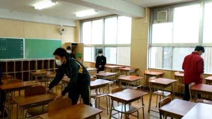 新2年の皆さんが、新入生が入る1階の教室を準備してくれています。先月まで過ごしてきた思い出ある教室。後輩たちが気持ちよく過ごせるよう、隅々まできれいにしてくれました。