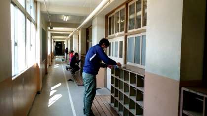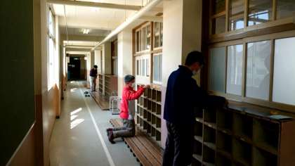 明後日(4月8日)の始業式にむけた準備がすすんでいます。先生方が教室の机・イスの数の調整や、靴箱にテープを貼る作業を行っています。1年生は10時〜10時15分に登校、2,3年生は9時〜9時15分に登校してください。持ち物等については、改めてお知らせします。