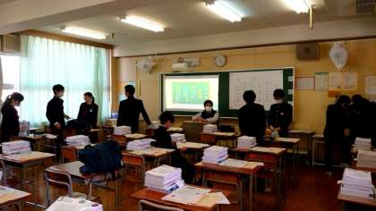 3年生の皆さん、やるべきことがしっかりと理解できている模様。先生方から指示を受けずとも自主的に行動していました。これからも最上級学年としての自覚を持ち、高津中学校をリードしていってくださいね。