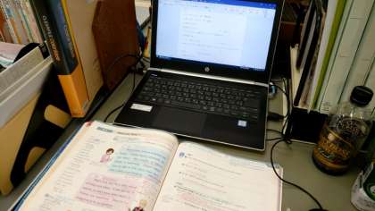 パソコンを使ってプリントを作成中