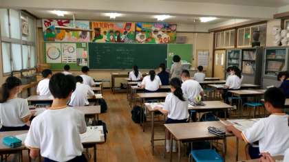 1年1組は1階の技術室・美術室に集まります。時間前に全員の集合が完了した模様。これからも時間を大切にしていきましょうね。