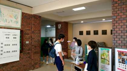 3年偶数クラス(2,4組)の登校です。3年の皆さんを出迎える先生方と気持ちよくあいさつを交わし、校門をくぐります。2か月間、どう過ごしていましたか?生活リズムが乱れないよう(健康管理を含め)、気をつけてくださいね。