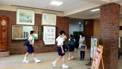 今日は1年生の登校日。先週同様、2クラスずつ登校します。今朝も1年の皆さんが元気にやってきました。今週は月・水の2回、1年登校日を設けています。明後日も忘れもの等がないよう、登校してくださいね。