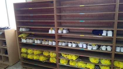 2年生体育館の靴箱のようす