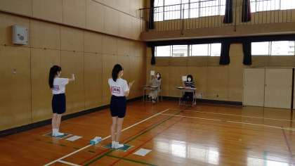 3年1、3組発育測定、視力検査の説明のようす