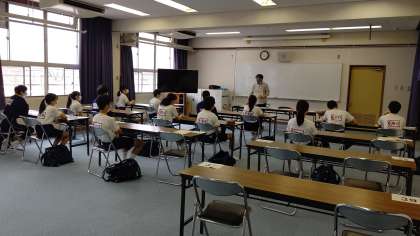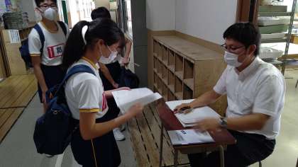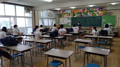 発育測定、視力検査の後、課題の提出、次回の登校日の説明やプリントの配付が行われました。