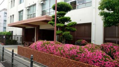 (上から)校門前のツツジの花が満開です