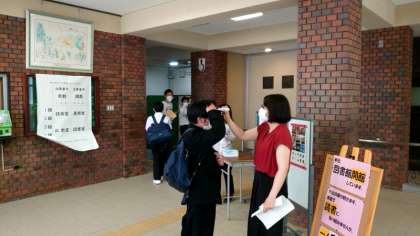 月曜日に続き、今週2回目の1年生登校日。昨夜からの雨もあがり、心地よい風が吹く中、皆さんが登校してきます。来週から3時間、授業が始まります。連絡プリントをよく読んで来週に備えてくださいね。