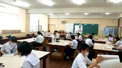 各教科から出された課題を集めた後、来週からの授業再開について説明がありました。クラス別の時間割プリントを見ながら、必要な準備物(教科書等)を確かめます。忘れ物が無いよう、気をつけてくださいね。