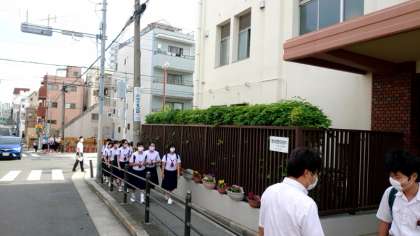 本日より全学年、午前・午後の2部制で授業を行います。今週は出席番号が奇数の皆さんが午前中の登校となります。先月の学年別登校と比べて、正門前がにぎやかになりましたね。
