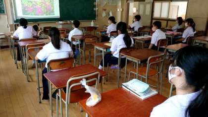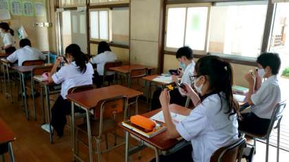 1年生理科の授業で「植物」について学習中。今日は、花の特色をルーペを使って観察します。シロツメクサやツツジなど、お家の近くで咲いているお花を各自が持参し、プリントに書き写します。皆さん、上手に特徴を写せましたか?