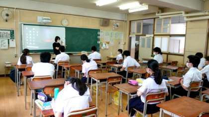 1年生で英語の授業がスタートしました。小学校での学習の成果か、(授業の)はじまりのあいさつ(英語)も慣れた様子で感心です。今日は問題集(ワーク)が配られました。英語の学習では、話す力だけでなく、書く力・読む力も大切です。問題集を活用しながら英語力を高めてくださいね。