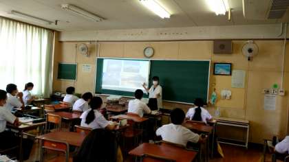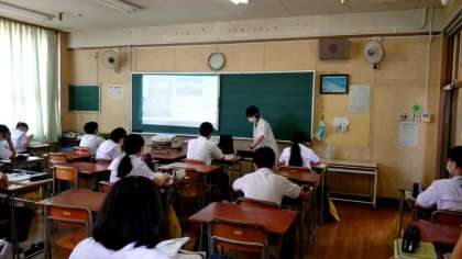 2年生社会科でさまざまな地形を学習中。日本の特徴的な山々を画像で紹介していきます。阿蘇山や桜島、富士山などテレビで見たことのある山が次々に投影されます。(行ったことがある人もいるかもしれませんね。)地図帳で山の位置もおさえておきましょう!