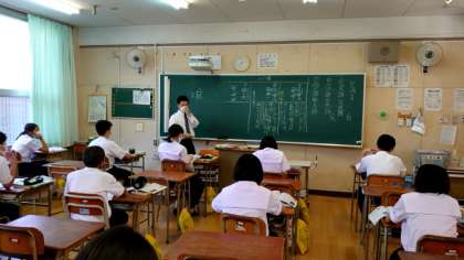 1年生国語科で「近代詩」の表現方法を教わります。今日は「比喩(ひゆ)」について。あるものを表現(説明)するときに「まるで〜のようだ」など、他のものに置き換えて伝える手法とのこと。中学校では「直喩(ちょくゆ)、暗喩(あんゆ)、擬人法」の3種類を学びます。1年生の皆さん、難しいかもしれませんが、しっかり学んでくださいね。
