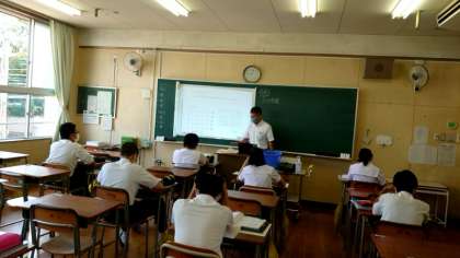 2年生数学科で文字式の計算を学んでいます。数字を文字に置き換えて、計算式を作っていきます。文字式はこれからの(数学の)学習で何度も出てくるので、今のうちにしっかり理解しておくことが大切です。先生に質問して、ぜひマスターしましょう!