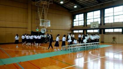 2年生後半のクラスがやってきます。名札に付けた校章や組章の傾きをお互いにチェックします。細かなところにも気を配り撮影にのぞみます。きっとステキな写真ができあがると思いますよ!