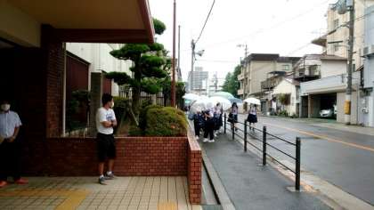 玄関ピロティで申し込みを受け付けます