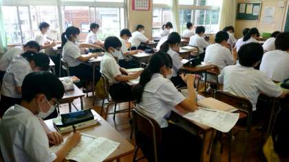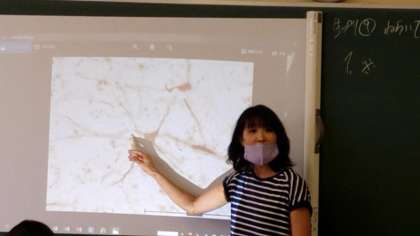 2年生理科で生物分野を学習中。今日のテーマは「ヒトの神経細胞」について。私たちの行動すべてをつかさどる頭(脳)には約860億個の神経細胞があり、これらが電気信号を発して情報を伝達するそうです。目には見えない不思議な世界ですが、イメージをふくらませて学習しましょう。