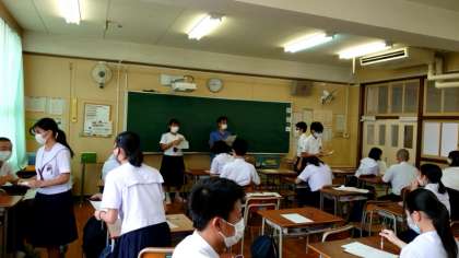 3年生の教室から歓声があがっています。技術科の期末テストを返却しているところ。テストは技術50点・家庭50点の配分とのこと。予想以上に結果が良かったり、その逆だったり…。提出物や実技作品なども評価対象なので、そちらにも力を入れてくださいね。