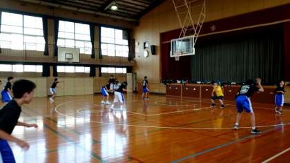 (上から)男子バスケットボール部の練習です