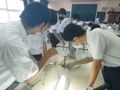 5教科から、力をつけたい講座を自ら選び、受講しました。理科は、実験演習から学びを深めます。明日から2学期が始まります。この学習会で学んだことを、これからの授業でも活かせるといいですね。