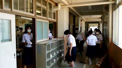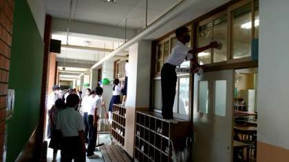 2学期初日。1時間目は大清掃に取り組みます。高津中学校の努力目標「校舎内を美しく」を全員で実践中。美しい学習環境を保ち、みんなが気持ちよく過ごせるよう、すみずみまでお掃除します。おかげでスッキリしましたね。