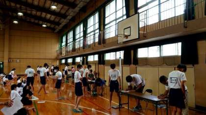 2年生の皆さんが発育測定を行っています。先生から測定値を告げられて喜ぶ人&がっかりする人、反応はさまざま。自身の身体の変化・成長を知ることはとても大切です。日々の生活リズムにも気をつけてくださいね。