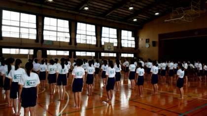 2年生に続いて1年生の皆さんが発育測定を行います。時間通りに体育館に集合し、テキパキと整列する様子は、集団行動の基礎がしっかり根付いているようで感心します。1年生の皆さんの今学期の成長が楽しみです。