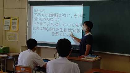 3年2組の英語の授業では、2人の友達がニューヨークの観光をする場面を想定したペア学習を取り組んでいました。ペアでたくさん会話を進めていましたね。ペアで話し合う学習の後は、長文の読み取りにチャレンジ!!短時間で「話すこと」「聞くこと」「読むこと」を高める学習が進みました。