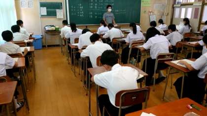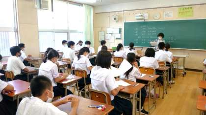 今日は全学年で「課題テスト:5教科(国社数理英)」が行われます。夏休みの課題やこれまでの学習の理解度を測り、今後の学習に役立てて欲しいと思います。1年生ではテストに関する諸注意の後、テストが始まりました。