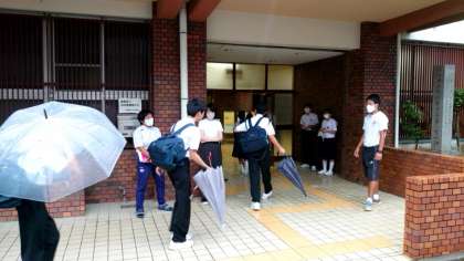 台風10号の影響なのか雨の朝を迎えています。いつもより蒸し暑さを感じる中、カラフルな傘を手に皆さん登校してきました。今週は課題テストがありましたね。テスト結果をもとに、今週末、見直し&課題対策を心掛けましょう。