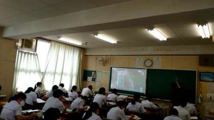 2年生社会科で環境保全を学習中。自然環境を守る取り組みの他、奈良や京都など日本の古都の街並みを守ることも大切ですね。歴史的な建造物や街並みを後世につないでいく姿勢が大切ですね。