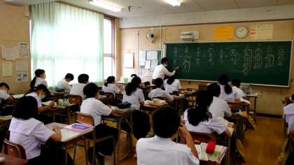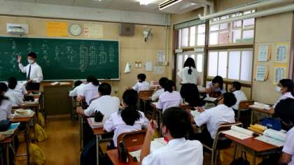 1年生国語科で漢文の授業を行っています。ことわざ「百聞は一見に如かず」は漢文では「百聞不如一見」と記されるとのこと。レ点や返り点など漢文を読む(訓読する)ときのきまりもしっかり学びましょう。