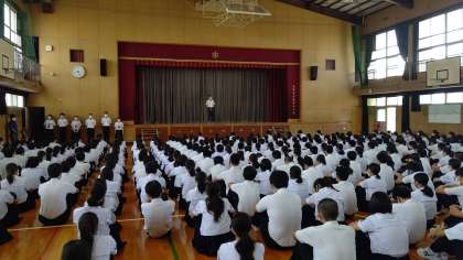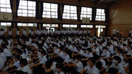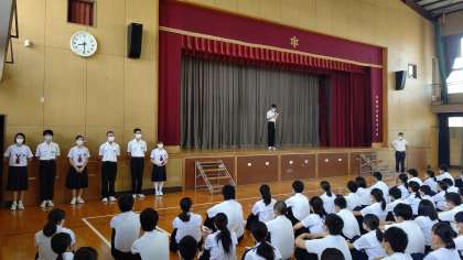 全校集会では、校長先生より3年生の体育大会の練習で全員がそろって素晴らしかったとお褒めの言葉がありましたね。3年生の皆さんの姿を見て、1・2年生も後に続いてくださいね。選手決めも各クラス進んでいるようで、少しずつ体育大会に近づいていく感じがしますね。