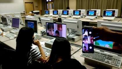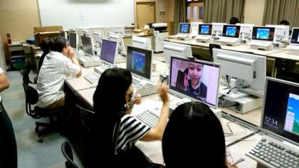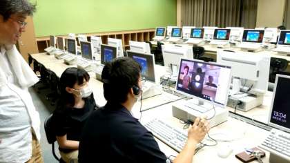 先週土曜日に試行した双方向通信実験(リモート)。最初は音声でやりとりし、接続を確認後、カメラ機能が上手く機能するか確かめました。パソコン画面に生徒の皆さんの顔が映ると、先生方も大喜び!休校時などでも上手く活用できそうですね。