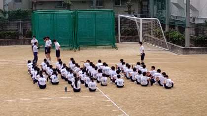 4時間目の2年1・2組の体育の授業で体育大会に向けた練習を行いました。走っている姿は、皆さん真剣で本番の体育大会のようです。トラックを思う存分使って活躍していましたね。