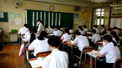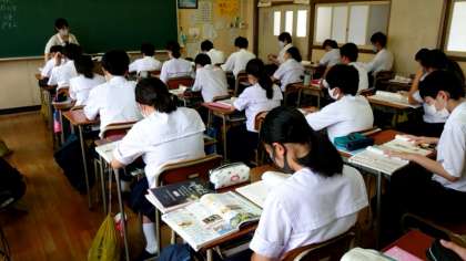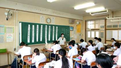 2年生国語科で鎌倉時代の軍記物「平家物語」を教わります。「祇園精舎の鐘の声 諸行無常の響きあり…」、有名な一節をみんなで音読します。先生が現代語に訳しながら授業がすすみます。冒頭部の暗唱テストがあるそうですよ。