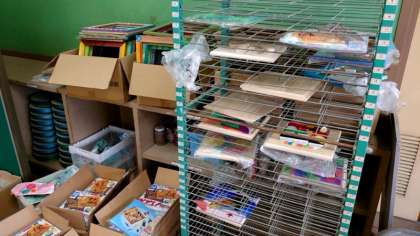 (上から)保管ラックに作品が並んでいます