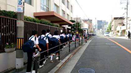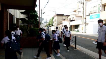 (上から)連休明けの朝。皆さん元気に登校します