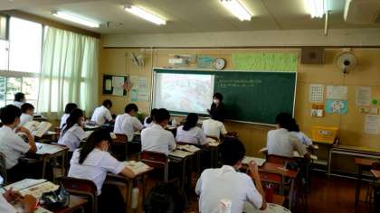 3年生家庭科で「住まいと防災」について学習中。非常用持ち出し袋の準備や避難場所・経路の確認など、ふだんから災害発生を想定した行動や対策を考える姿勢が大切ですね。