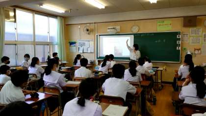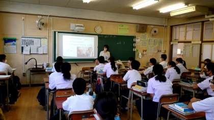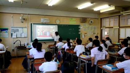 1年生英語科で「Who〜?」を使った疑問文を勉強中。今回は世界各国の首脳(大統領や首相)夫人(配偶者)の写真を見ながら学習します。「ファーストレディ」という呼び方もニュースで聞いたことがある人もいるのでは?クイズの要素も交え、楽しく授業がすすみます。