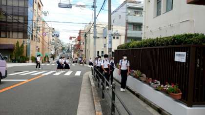 青空に薄い雲が漂う気持ちの良い朝。中間テスト2日目を迎えました。今朝もノートや教科書を手に登校してきます。今日は理科と社会のテストが行われます。テストが終わると少しホッとできますね。